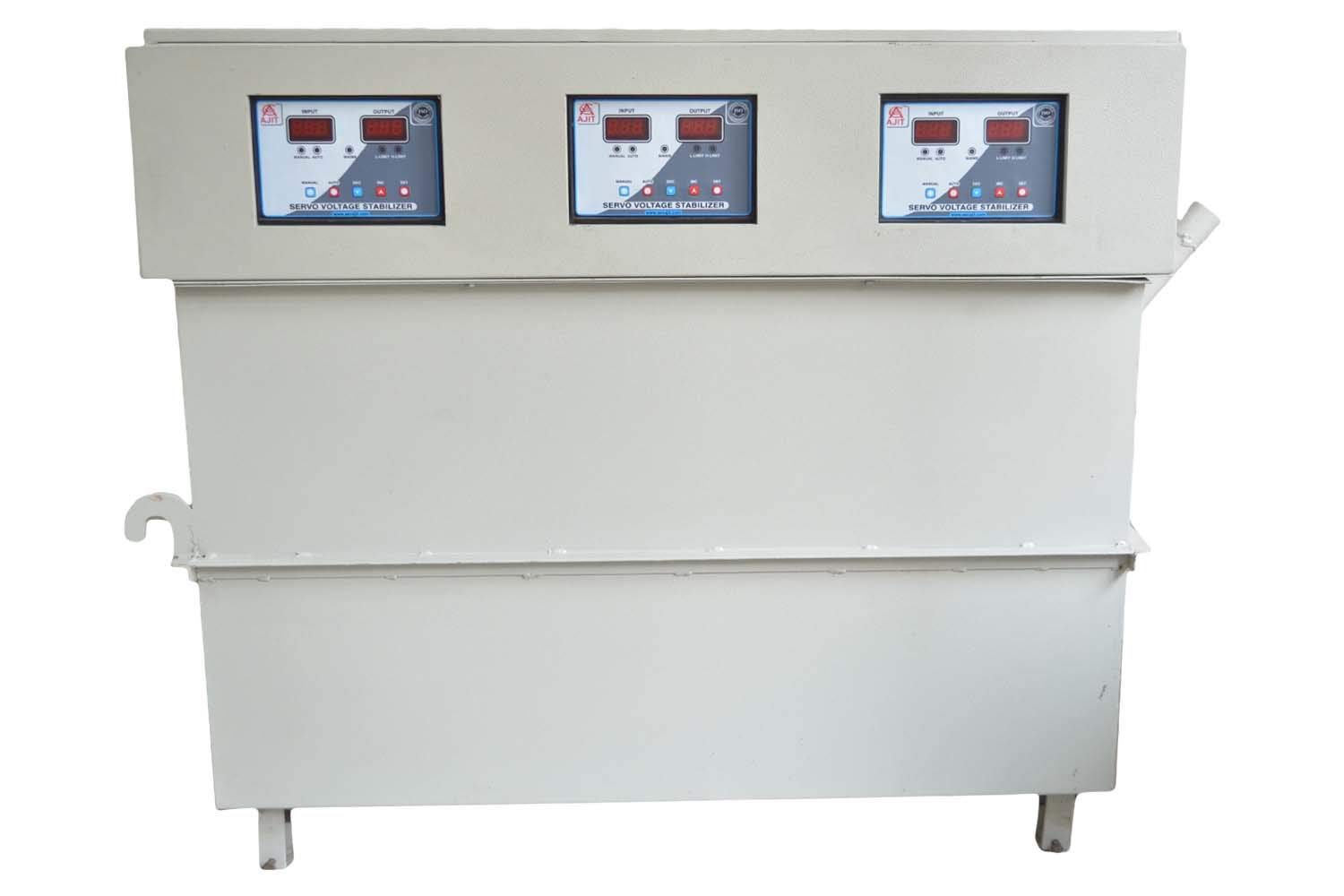 Servo Voltage Stabilizer is commonly observed that, AC main supply is never 230 Volt or 415 Volt, but varies from 150 Volt - 300 volt and 300 Volt - 500 Volt. The difficulties caused by them are well known, such as Over Load Condition, Line Losses, Poor Power Factor and several other reasons. Generally constant voltage which is required to load is never constant, but in fluctuation manner. It is observed that during the daytime, the voltage is quiet low and during the night the Voltage is high then the normal.